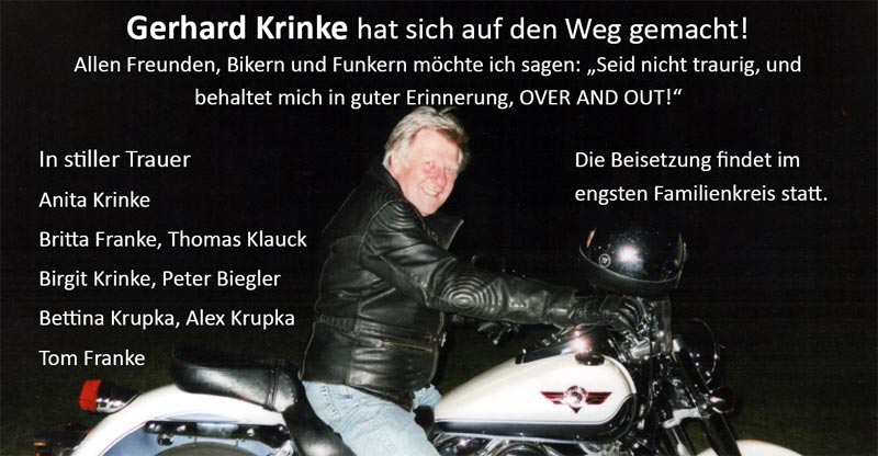 Unser Honory Mitglied Gerhard Krinke hat uns verlassen. Er starb am 16.01.2015 nach schwerer Herz OP .